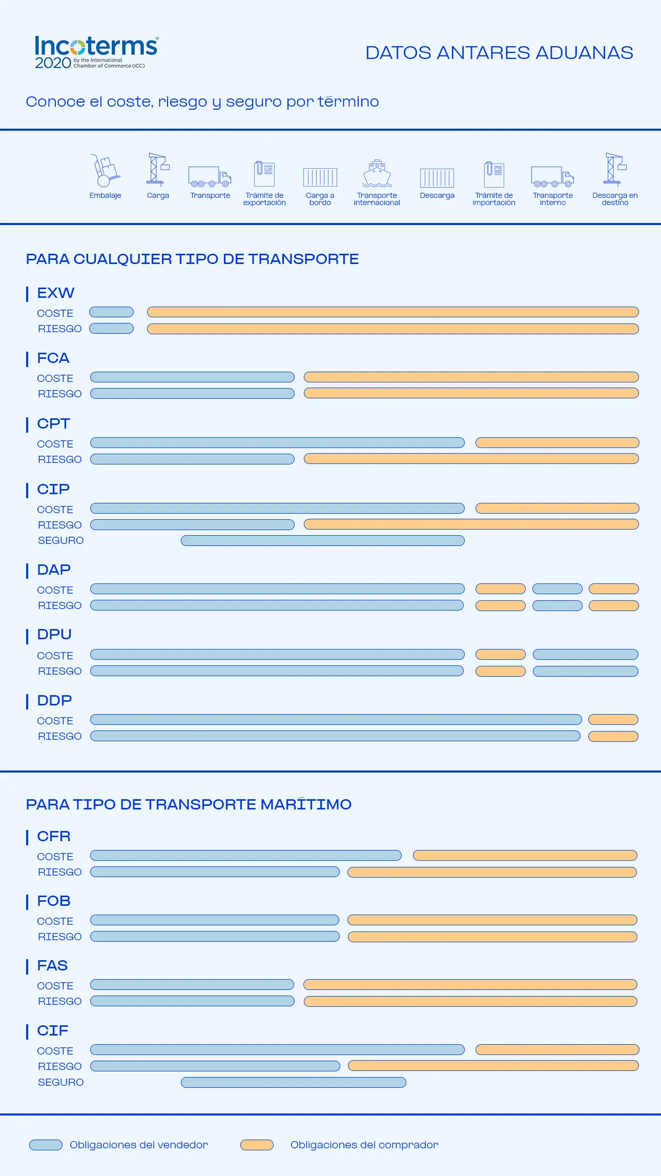 Los INCOTERMS ® 2020 son reglas internacionales uniformes y voluntarias para la interpretación de términos comerciales que son desarrollados, mantenidos y promovidos por la Comisión de Derecho y Práctica Mercantil de la Cámara de Comercio Internacional (CLP-ICC). Estos términos sirven para definir las responsabilidades del exportador e importador y son incorporados en contratos de compra y venta.
